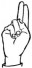 На ћирилици написано МИЊА СТОЈКОВАЦ састоји се из 13 слова [?]. Исписано ћириличном једноручном азбуком за глувонеме: